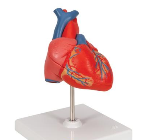 Bu model sayesinde kalp anatomisini, odacıklar, atriyumlar, damarlar, aort ile birlikte ayrıntılı bir şekilde inceleyebilir ve yeniden canlandırabilirsiniz. Ön kalp duvarı odacıkların görünebilmesi için çıkartılabilmektedir. Destek üzerinde.